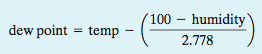 dewPoint function should take two inputs, the temperature (in degrees Fahrenheit) and the relative humidity (a percentage between 0 and 100), and return the dew point (in degrees Fahrenheit) as defined by the following formula: