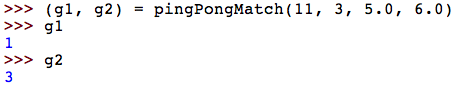 score1 and score2 stored the player scores, the following would return a pair containing those scores: return (score1, score2) .