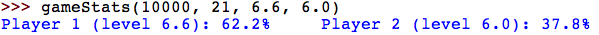 gameStats function working, generate data to fill in the table below. Each simulation should run 10,000 games.