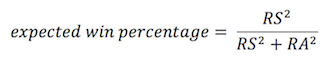 In the past few decades, professional baseball has been revolutionized by the use of statistics to analyze player and team performance. The driving force behind this movement was Bill James, who introduced many of the stats used today (e.g., runs created, win share, range factor). Perhaps his most famous innovation is the Pythagorean Winning Percentage, which predicts the winning percentage of a team based on how many runs they score (RS) and how many they allow (RA):