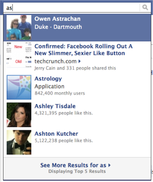 Many Web sites have search boxes where the user can enter a phrase and then search a collection of items (e.g., database entries, Web pages, user names) that match that name. Some of these search boxes are proactive, displaying potential matches as soon as the user starts typing. For example, if the first letter the user types is "a", then all items that start with "a" are immediately displayed. If the user then types "s", then the display list is reduced to those items that start with "as". Each subsequent character typed reduces the displayed matches. For example, the following screen shot shows a search box from Facebook, which displays the top matches for a prefix entered by the user.
