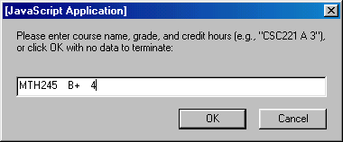 For example, suppose a student entered the following course information (with each line entered in a different dialog box):