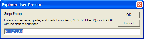 For example, suppose a student entered the following course information (with each line entered in a different dialog box):