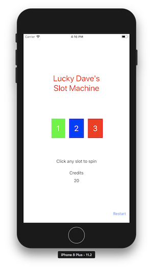 For full credit, your layout should look reasonable even if the phone model changes or the device rotates. That means you will need to use contraints to force the alignment of the UI elements. For extra credit, you can replace the colors with images (e.g., lemons, cherries, ...), upgrade the look of the app, and/or add extra features to the game.