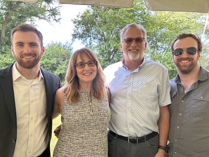 I'm happy to admit that my personal life pretty much revolves around my wife, Laura, and our two sons, Charlie and Jack. Charlie was born on May 25, 1997, and his brother Jack was born exactly three years later (in the same room in the same hospital). Charlie graduated with a degree in Mechanical Engineering from Duke University in 2020. He is the Design Engineer at Janus Motorcycles, a startup in Goshen, Indiana that designs and builds vintage-style motorcycles. Jack graduated with a double major in Marketing and Graphic Design from Creighton in 2022. He is the Marketing Manager at the Slowdown in Omaha and plays drums in an indie-funk band (Wood Hoops) that performs regularly in Omaha and across the Midwest. Laura stays busy running her lab in the Biomedical Sciences department at Creighton, studying the mechanism and treatment of skin cancer. She also serves as Associate Dean of Research for the School of Medicine. Our critters, an Australian Shepherd named Rizzo and a tabby named Target, complete us.